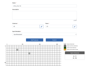 Screenshot of the information for a sequence defined block layout.Screenshot of the information for a sequence defined block layout add ratio.Screenshot of the information for a sequence defined block layout add spot concentrations.Screenshot of the information for a sequence defined block layout spot metadata.